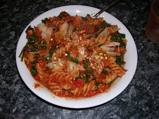 Now that I am on my own, I am left to my own devices. I actually quite looked forward to the eating of 'whatever's around', 'this and that in the cupboard', and 'just some leftovers'; it was going to be liberating, relaxing, EASY. I started off well with this philosophy, while still trying to be healthy - after all, those vegetables and ingredients were still in the fridge from when Mike was visiting here last, I couldn't let them go bad. Healthy(ish), but really sad. So pathetic were my self-offerings I had to take some pictures of my worst meals (attached). One night I even used a pot of my youngest son's mush that I even deemed not good enough for him anymore, so as not to waste it, I added it to my sauce. It did turn out to be one of the better meals, actually. But then again that meal used a cooking pan, so it was a step above.